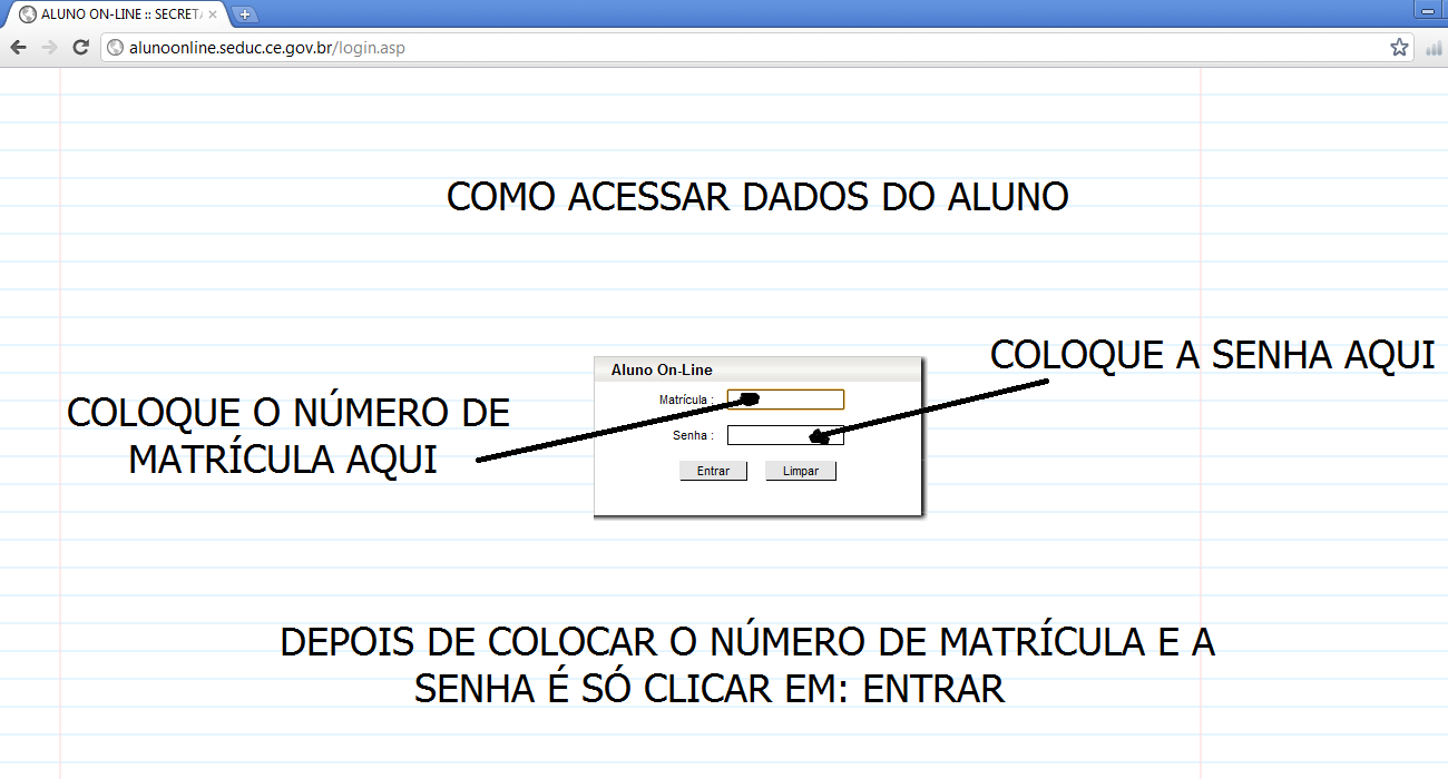 Site da SEDUC para acessar o ALUNO ON LINE: